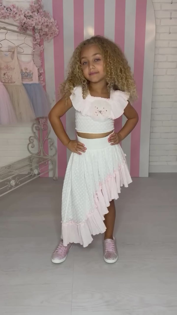 Let your little fashionista twirl in style with the Atley Skirt Set by designer brand Ooh La La Couture, a dreamy two-piece outfit perfect for sunny days, special occasions, and picture-perfect moments. This standout set includes a soft flutter-sleeve crop...