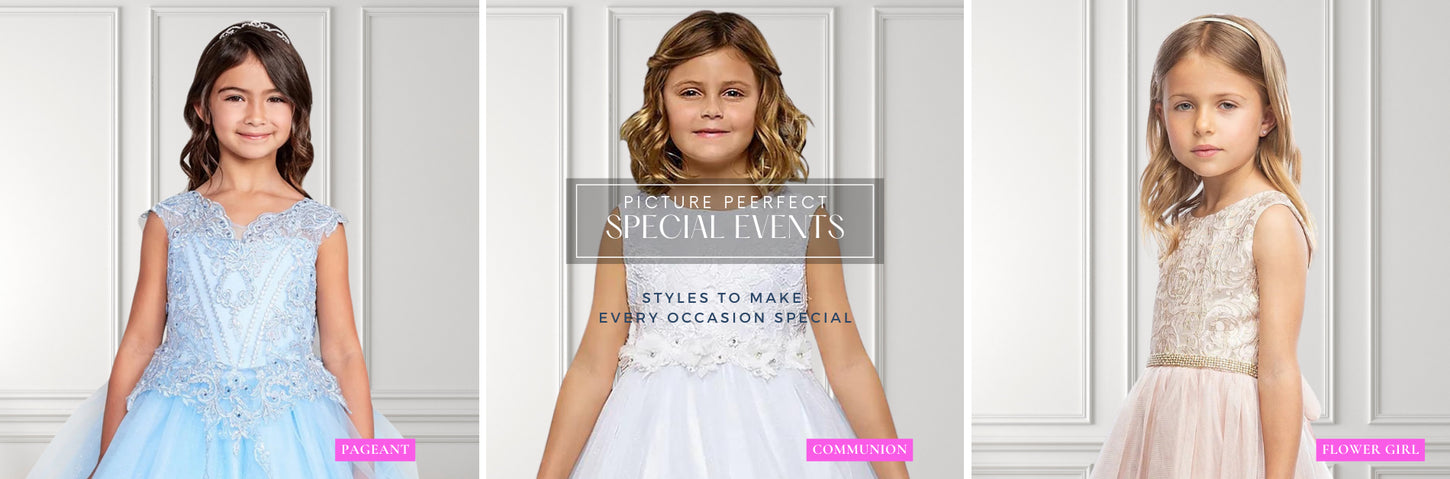 Make her special moment unforgettable with elegant dresses for every occasion. From First Communion to Flower Girl and Pageant gowns, find the perfect look for her big day.