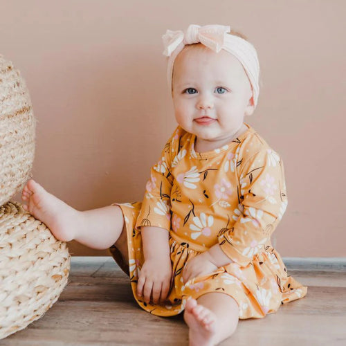 Our twirl bodysuit is the newest addition to our twirl line. Perfect for babies! Snap closure for diaper changes AND no need for bloomers. Matching twirl dresses are available for big sis, cousin, or BFF. INSTRUCTIONS: Wear-Twirl-Repeat FIT & FABRIC...