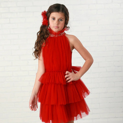 Our show-stopping cap sleeve party dress in soft organic cotton is the perfect look for all her special occasions. Features a dramatic waist sash and bow, twirl-worthy skirt, full lining, and a zipper at the center back for easy dressing....