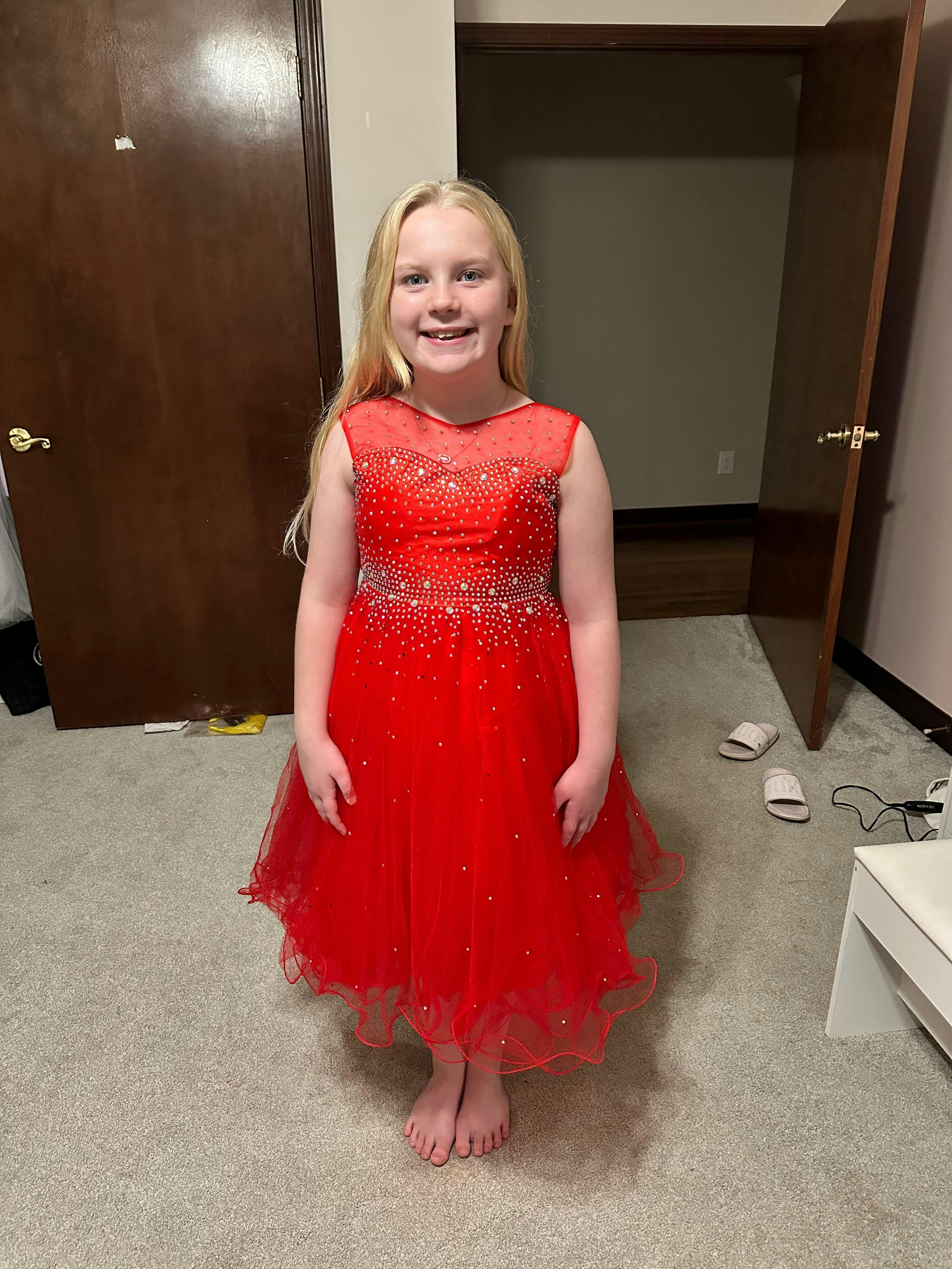 This dress was the star of my daughter's party 😍 So in love with the gorgeous color and stunning design. I had this dress dry cleaned before the event and it held up well so I know it's great quality! It was a little long for my daughter so a petticoat is a must!