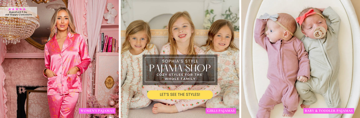 Welcome to Sophia's Style Pajamas Collection, where cozy pajamas for the entire family bring comfort and style together. Our PJ collection features ultra-soft fabrics, hypoallergenic options, and styles perfect for every season.